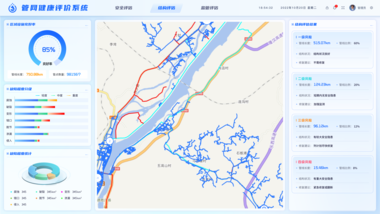 结合排水管网基础数据、运维数据等建立专业分析评估模型,实现排水管网的结构评估、缺陷评估、监管评估,诊断排水管网现状问题及风险,为后续的运维和改造提供依据。