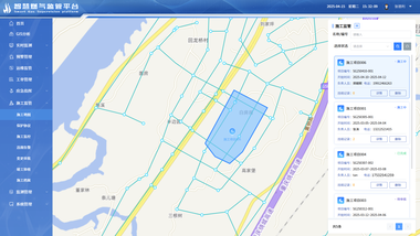集项目施工上报、图纸对比分析、部门在线审批及多部门实时协同处置于一体,同时接入视频监控,叠加AI智能分析识别算法,针对地下管网设置电子围栏,实时监控管网周边异常行为,实现施工全过程的监管。